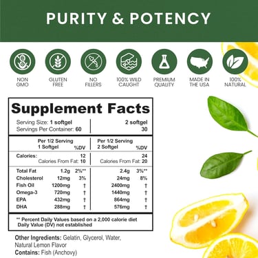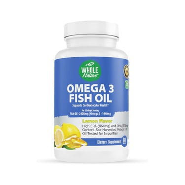 Elevate your daily health regimen with these Maximum Strength Omega-3 Fish Oil Supplements, a potent 2-in-1 formula designed to deliver concentrated support for your entire body. Each easy-to-take capsule provides a substantial 2400mg of Omega-3 fatty acids, featuring a high-potency 1440mg blend of EPA (864mg) and DHA (576mg) in their natural triglyceride form for superior absorption. This advanced combination works synergistically to promote cardiovascular wellness, support cognitive function and brain tissue health, maintain sharp vision and retinal integrity, boost immune defense, and contribute to a radiant complexion. Infused with a natural lemon flavor to ensure a fresh aftertaste, this supplement offers a comprehensive, multi-organ approach to wellness for both men and women. Made in the USA with third-party tested ingredients and backed by a 30-day satisfaction guarantee, it's a trusted, high-value choice for anyone seeking to harness the full-spectrum benefits of essential fatty acids in one convenient daily dose.