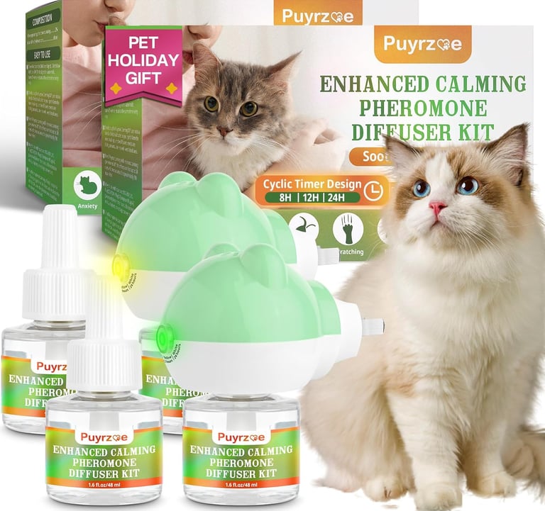 Restore harmony with smart, customizable calm. The Puyrzoe pheromone diffuser offers 3 timer modes to fit your cat's routine, providing up to 120 days of gentle anxiety relief for scratching, marking, and stress.