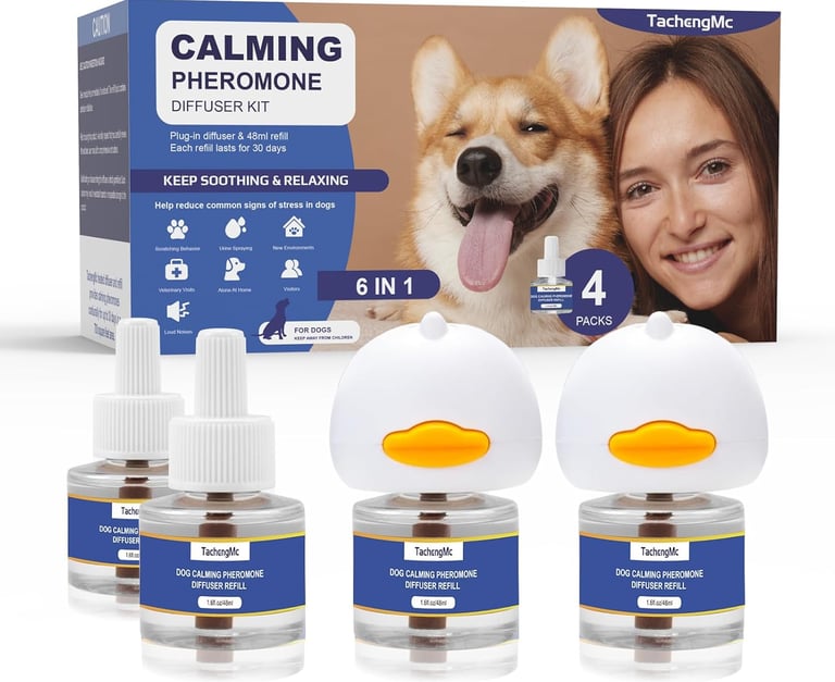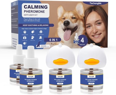 Transform your home into a sanctuary of calm for your anxious pup with the TachengMc 6-in-1 Dog Calming Pheromones Diffuser Kit. This comprehensive solution utilizes scientifically formulated appeasing pheromones that mimic the natural comforting signals of a mother dog, helping to alleviate stress, fear, and anxiety triggered by loud noises, separation, vet visits, travel, or changes in environment. The kit includes two sleek diffusers and four large 48ml refills, providing an impressive 120 days of continuous, hassle-free coverage for areas up to 700 square feet. Simply plug in a diffuser in the room where your dog spends the most time; its advanced diffusion technology works silently and effectively, releasing a odorless, non-toxic vapor that is completely safe for dogs, cats, and humans. By promoting a deeper sense of security and relaxation, it helps curb problem behaviors like destructive chewing, excessive barking, and shaking, allowing your dog to feel more comfortable and at ease in their own home. For reliable, long-term anxiety management without medication, this easy-to-use diffuser kit is an essential tool for fostering peace, comfort, and a stronger bond with your best friend.